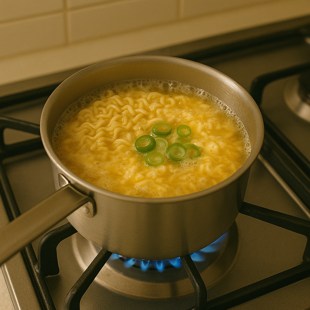 - 물이 끓으면 라면 사리를 넣고 2분 정도 끓여주세요.