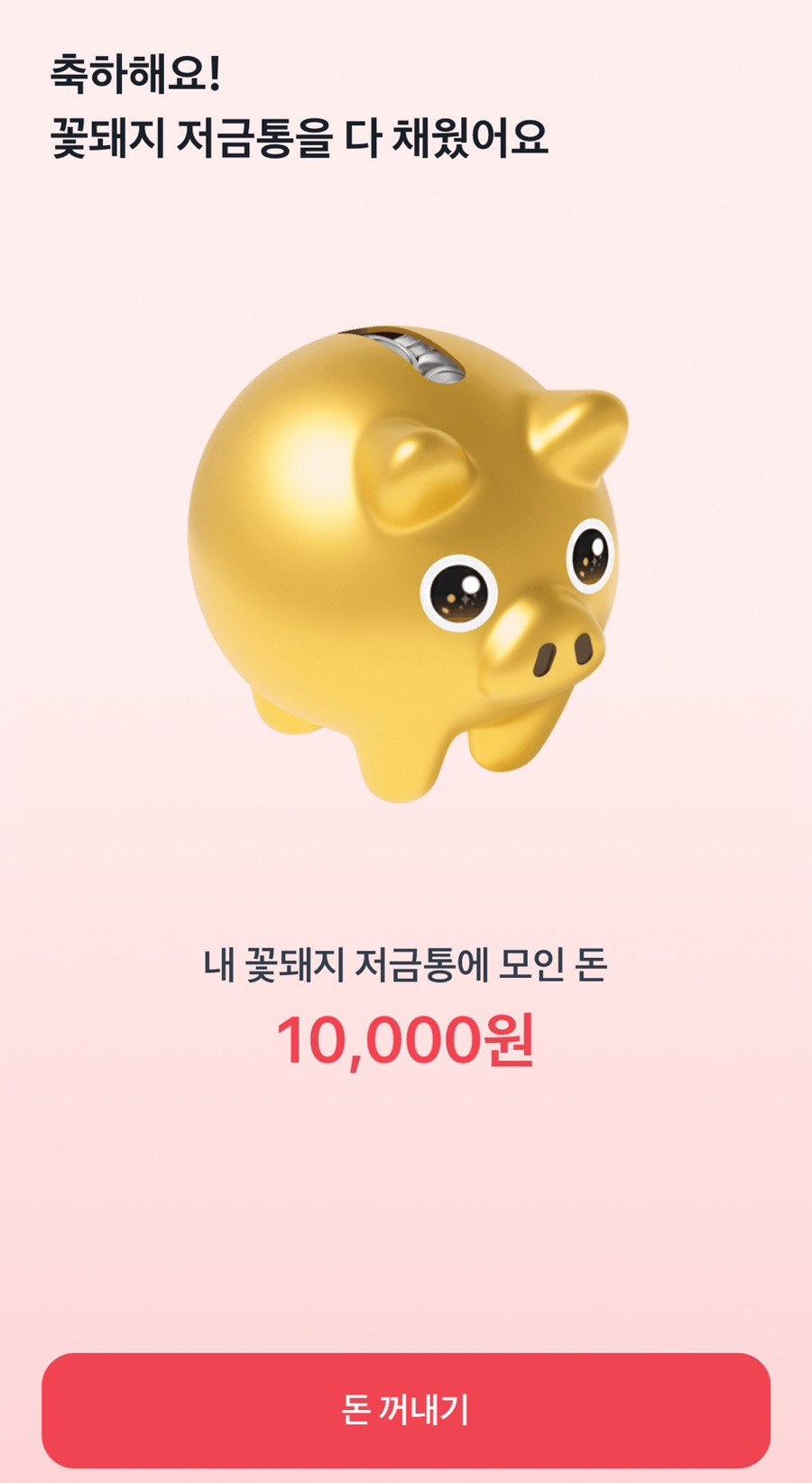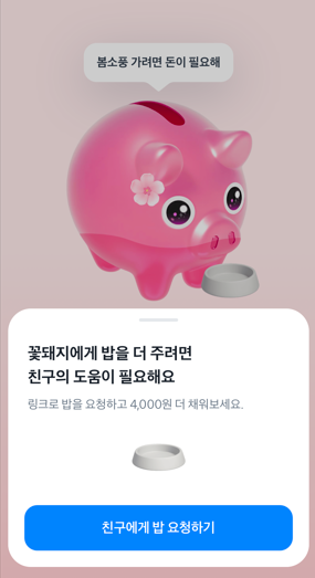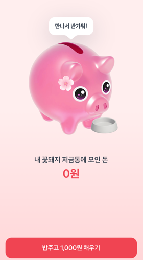 이름 그대로 돼지저금통 모양에 ‘밥을 주듯’ 잔돈이나 친구 초대를 통해 모으면, 금액이 차곡차곡 채워져 목표 달성 시 보상을 받게 됩니다.