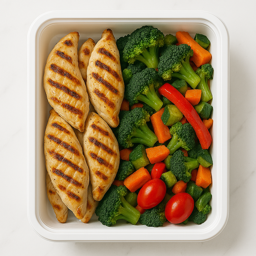 - 구성: 닭안심 120g + 양배추, 주키니, 파프리카 볶음 + 올리브유 소량