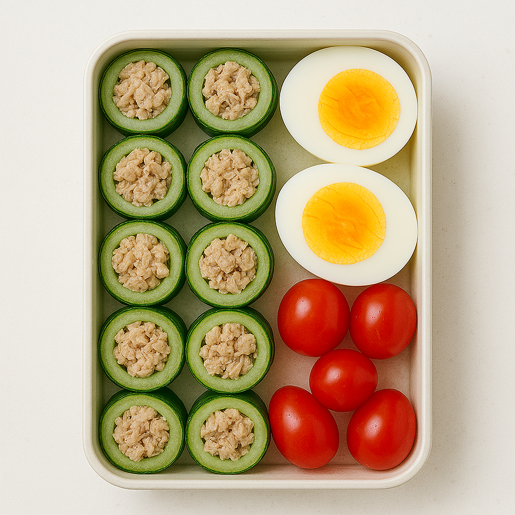 ✅ 레시피 3: 참치오이말이 + 삶은계란 + 방울토마토
